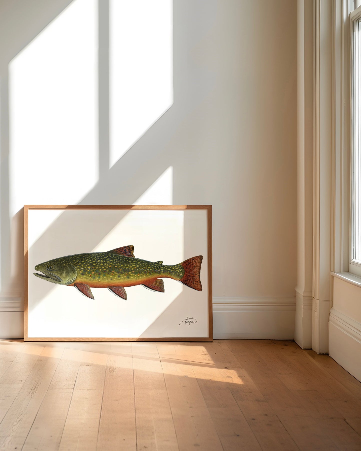 Publiée juste à temps pour l'ouverture de la saison, cette truite de ruisseau pourrait être votre première prise. Il s'agit d'une impression giclée (qualité archive, galerie) de la peinture originale, imprimée sur du papier d'art texturé, présentant des couleurs et des détails égaux à ceux de l'œuvre originale.