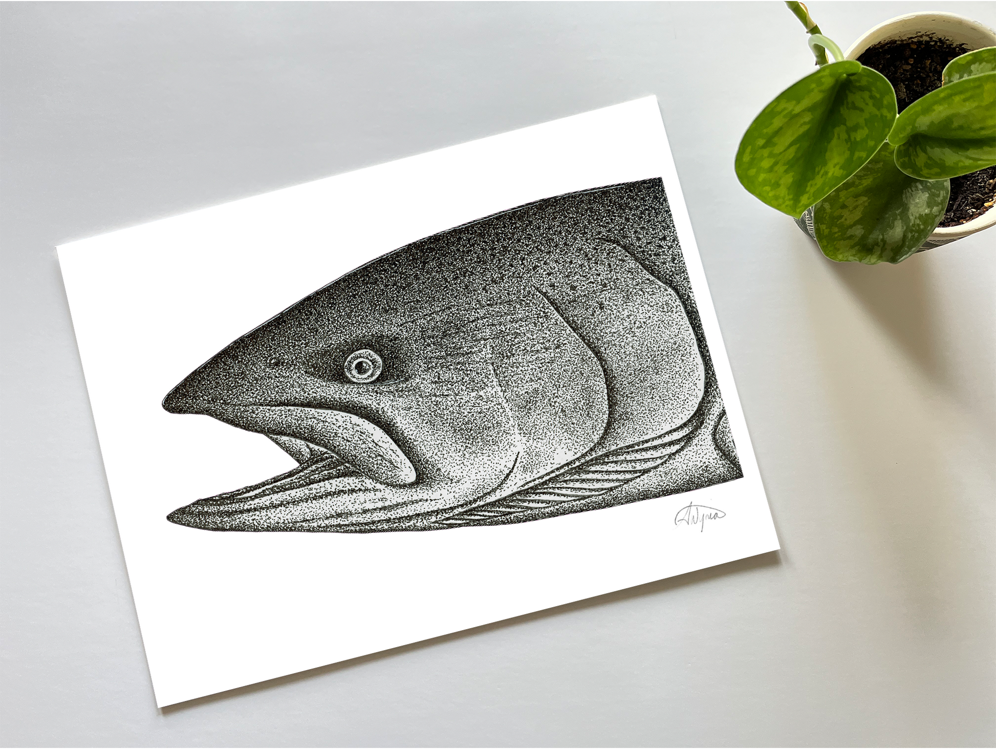 The print is of an original pen and ink, completed with staedtler fineline markers using the technique of stippling.